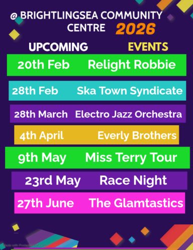 Events coming up at Brightlingsea Community Centre.